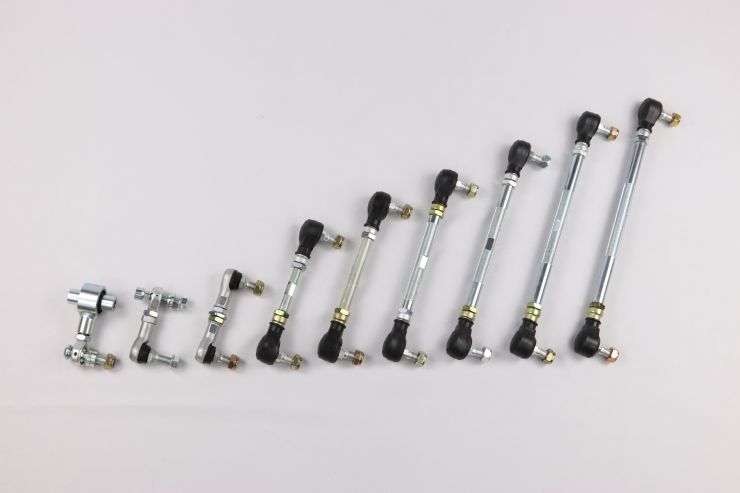 車高調整式サスペンションキットの装着等による車高変化に伴い変化してしまうスタビライザーの取り付け角度を最適な取り付け角度に調整することが可能です。