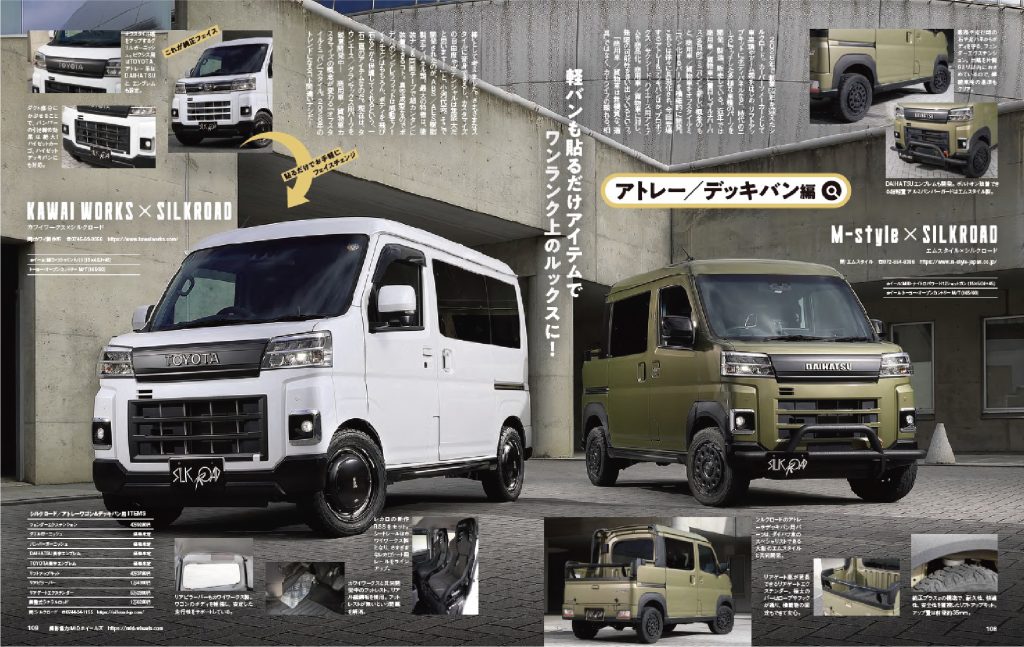 国産ミニバンやワゴン等のカスタムマガジンとして長年愛読されている 『スタイルワゴン』2026年1月号に、 プロボックス、アトレー/デッキバン、ハイエース用と多数のパーツが5ページに渡り紹介されました! プロボックスのパーツは大阪のJユニット様、奈良のブレインストーム様のデモカーに採用。 アトレーは奈良のカワイ製作所様、デッキバンは大阪のエムスタイル様にパーツ採用。 ハイエース用スプラッシュガードは、撮影していただいたカメラマン様の愛車に装着していただいております。 ハイゼットジャンボ用パーツもオマケで掲載されていますので、ぜひ雑誌をご覧ください! (2025年12月16日発行) <雑誌掲載パーツはコチラになります> ◆プロボックス フェンダーエクステンション/サイドステップガード エンブレムプロテクター リフトアップキット リアピラーバー 調整式ラテラルロッド ◆アトレー/デッキバン フェンダーエクステンション グリルガーニッシュ(2026年初旬発売) バンパーガーニッシュ(2026年初旬発売) リフトアップキット 調整式ラテラルロッド ◆ハイエース スプラッシュガード ◆ハイゼットジャンボ フェンダーエクステンション/フロントリップスポイラー フロントガーニッシュ(2026年初旬発売)![]()
