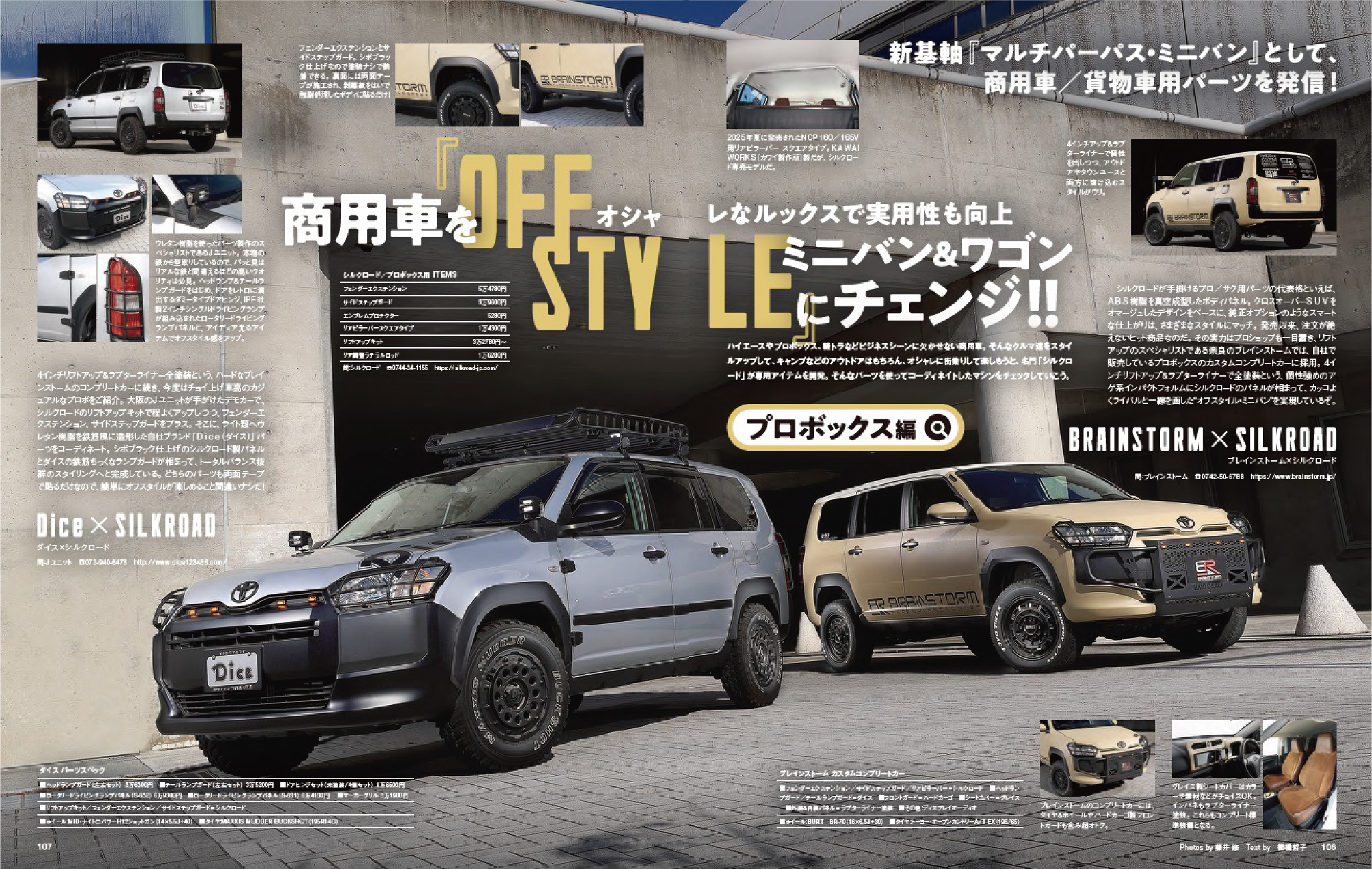 国産ミニバンやワゴン等のカスタムマガジンとして長年愛読されている 『スタイルワゴン』2026年1月号に、 プロボックス、アトレー/デッキバン、ハイエース用と多数のパーツが5ページに渡り紹介されました! プロボックスのパーツは大阪のJユニット様、奈良のブレインストーム様のデモカーに採用。 アトレーは奈良のカワイ製作所様、デッキバンは大阪のエムスタイル様にパーツ採用。 ハイエース用スプラッシュガードは、撮影していただいたカメラマン様の愛車に装着していただいております。 ハイゼットジャンボ用パーツもオマケで掲載されていますので、ぜひ雑誌をご覧ください! (2025年12月16日発行) <雑誌掲載パーツはコチラになります> ◆プロボックス フェンダーエクステンション/サイドステップガード エンブレムプロテクター リフトアップキット リアピラーバー 調整式ラテラルロッド ◆アトレー/デッキバン フェンダーエクステンション グリルガーニッシュ(2026年初旬発売) バンパーガーニッシュ(2026年初旬発売) リフトアップキット 調整式ラテラルロッド ◆ハイエース スプラッシュガード ◆ハイゼットジャンボ フェンダーエクステンション/フロントリップスポイラー フロントガーニッシュ(2026年初旬発売)![]()